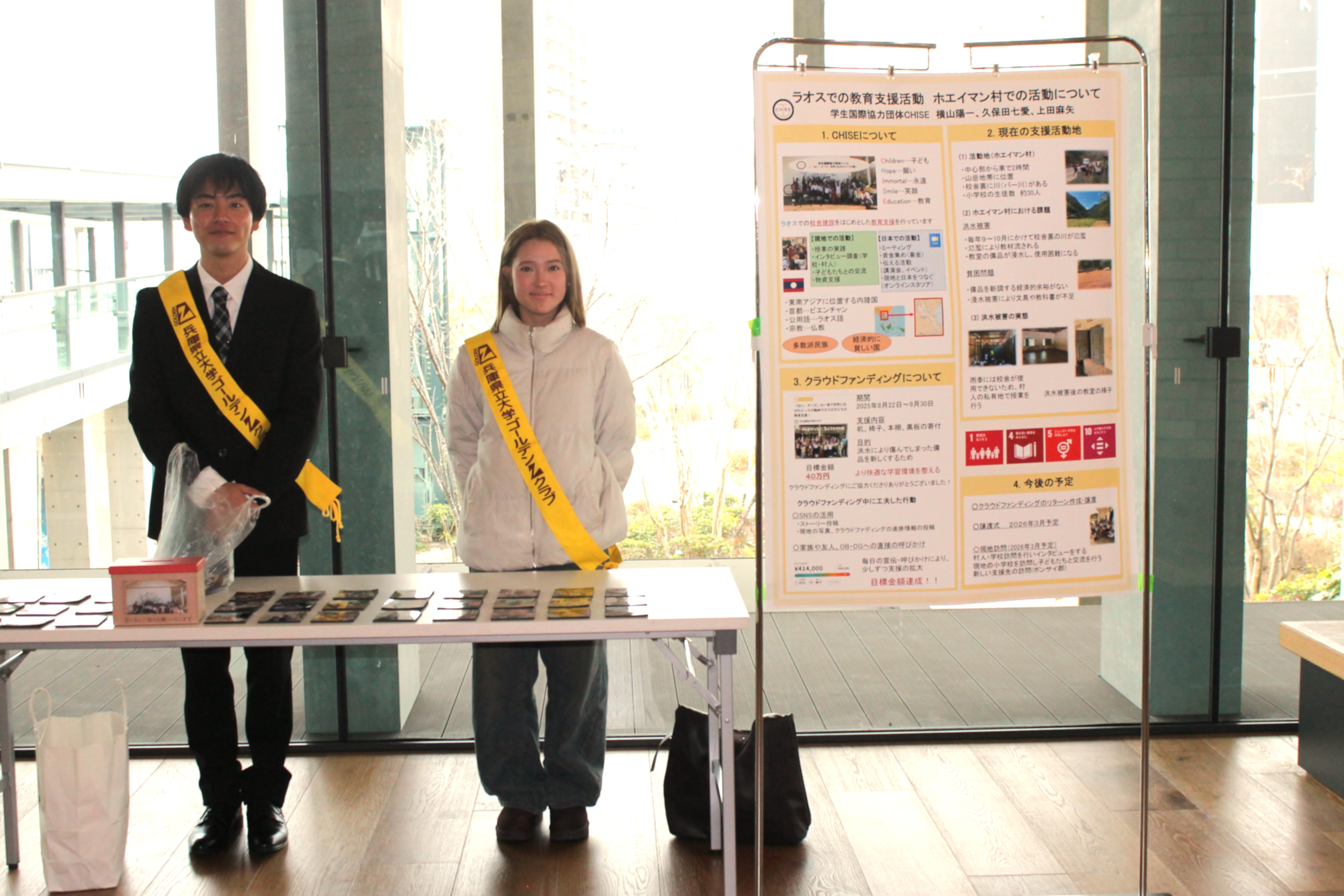 ロビーにて、兵庫県立大学ゴールデンZクラブの活動紹介